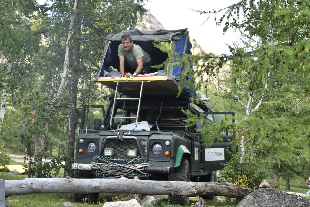 Troviamo uno spiazzo dove campeggiare e finalmente, in pace, ci dedichiamo all’ordine delle cose:
