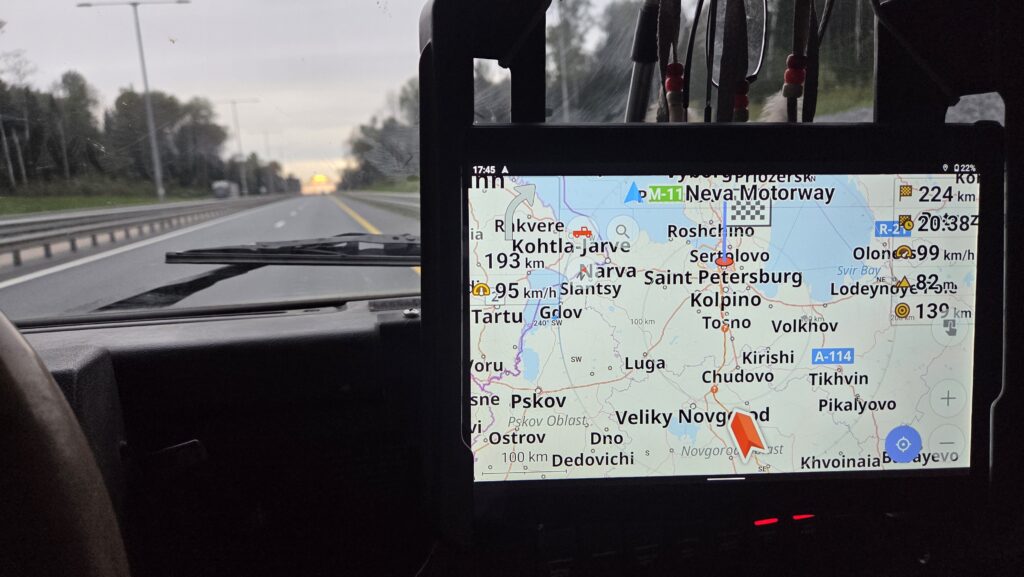 A circa 200 km da San Pietroburgo, il clima si addolcisce: un’aria tiepida, quasi sorprendente, ci accompagna fino a un ottimo autogrill dove ci fermiamo per un pranzo “fusion” — cibo coreano in mezzo alla steppa russa!